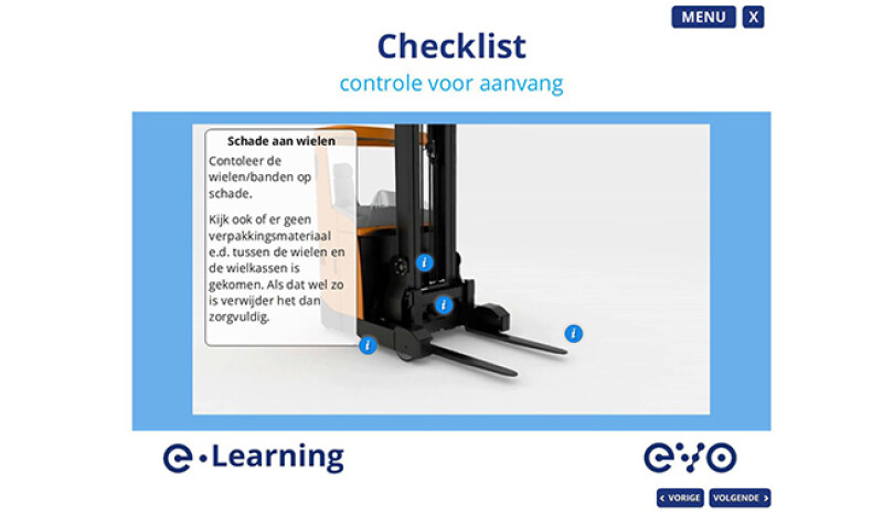 Voor EVO ondernemersorganisatie produceerde PostMotion een e-learning waarin heftruckchauffeurs geleerd wordt veilig te werken.